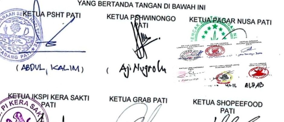 Mereka berasal dari berbagai organisasi besar di Pati, mulai dari Ketua LSM Laskar Joyo Kusumo, Ketua PSHT, Ketua PSHW Winongo, Ketua Pagar Nusa, Ketua Ormas Lindu Aji Jolosutro